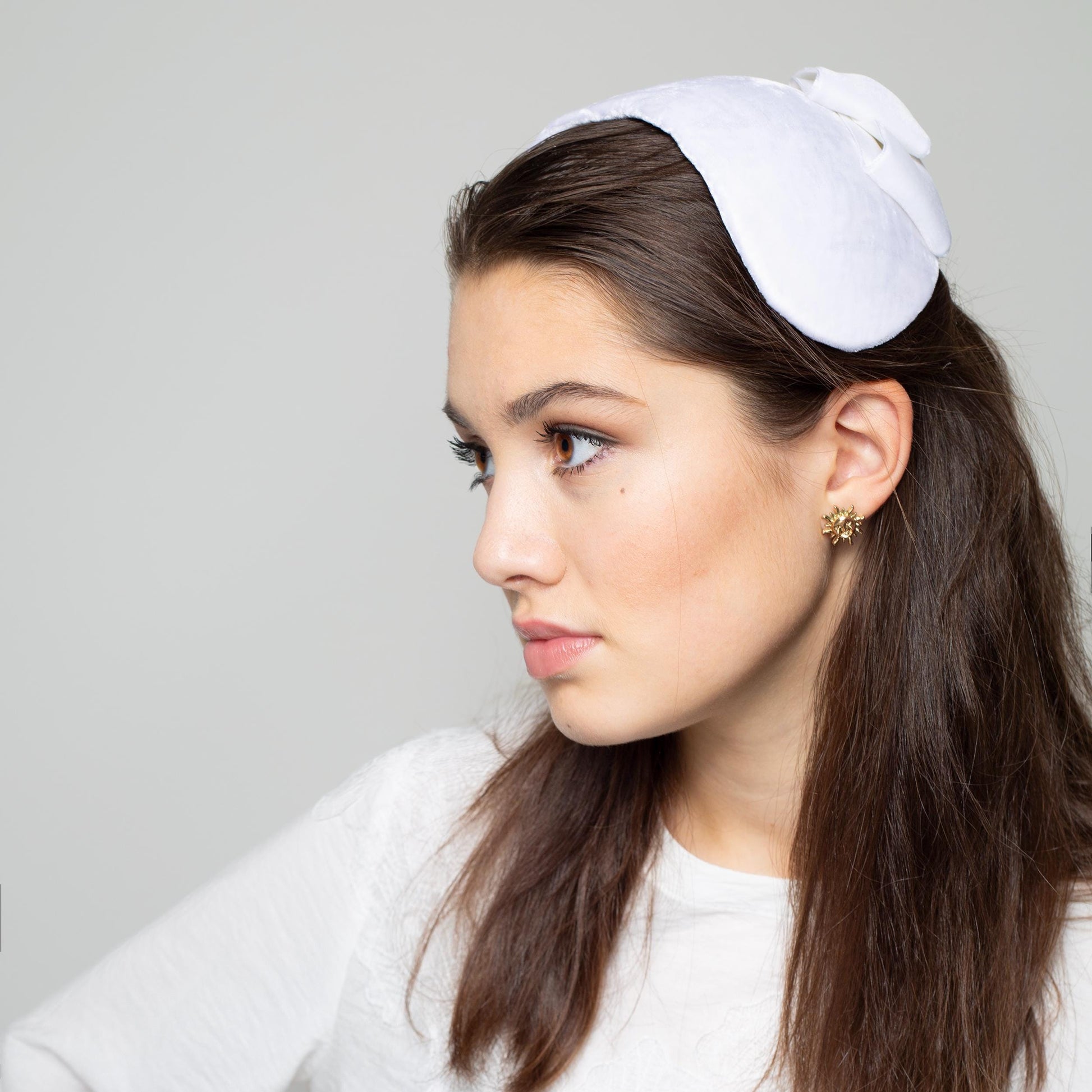 Sametová svatební čepice s mašlí, svatební čepice ve stylu starého Hollywoodu, vzadu nošený poloviční klobouk