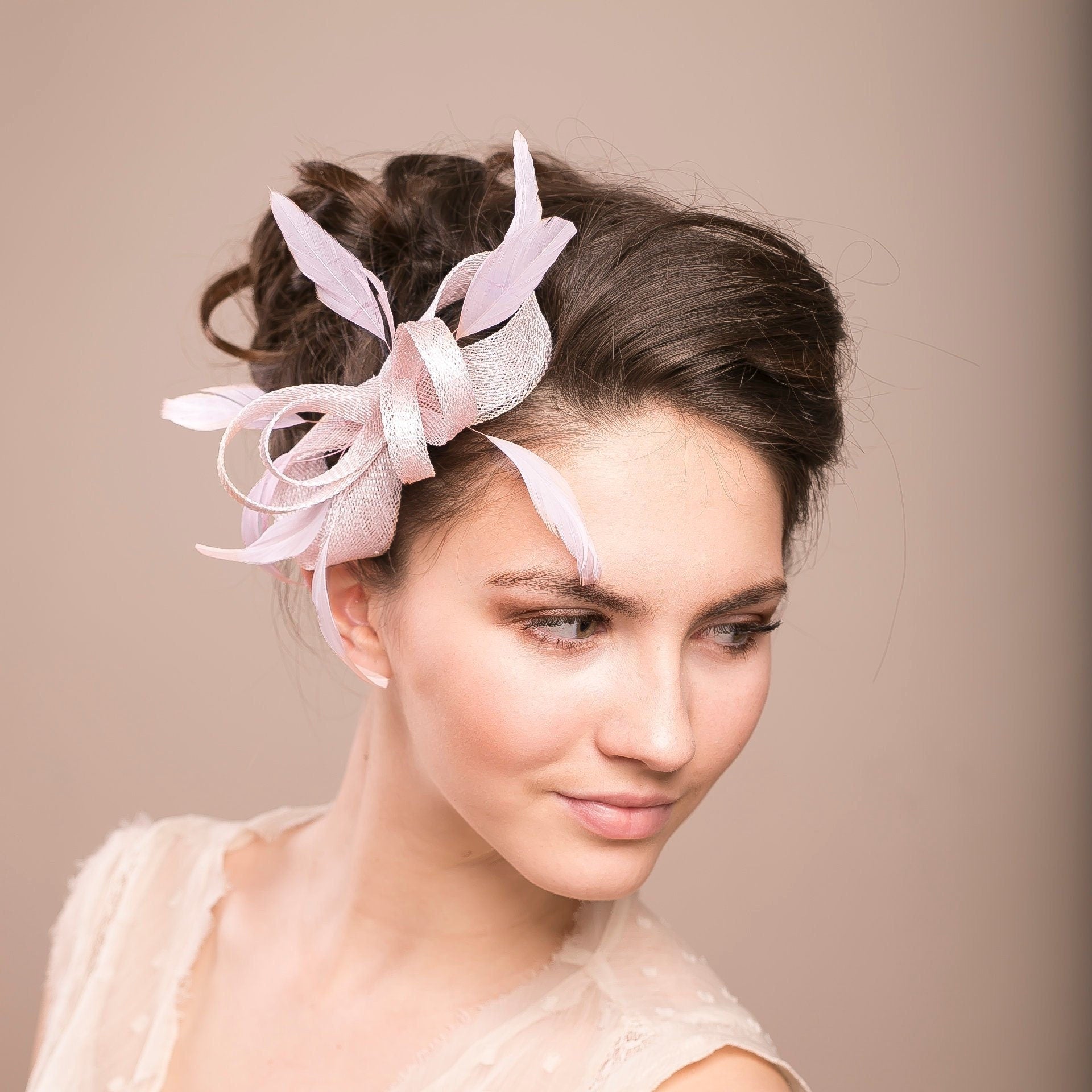 Wedding fascinator in a pastel color adorned with feathers, perfect option for brides or bridesmaids. It also looks stunning on the mother of the bride or groom or a gift for elegant mum. Attached to a 4.5 cm alligator clip, it provides easy placement in any hairstyle. This charming fascinator adds a touch of elegance and sophistication to your bridal look. Its pastel tone makes it versatile and perfect for coordinating with a variety of colors and styles of attire. The feathers bring a romantic and flowing touch, creating a distinctive and charming accessory. You can place it to the side in an updo or at the back of a bun, offering versatile options to suit your style and preferences. The alligator clip ensures a secure hold throughout the celebration, ensuring you look perfect on that special day.