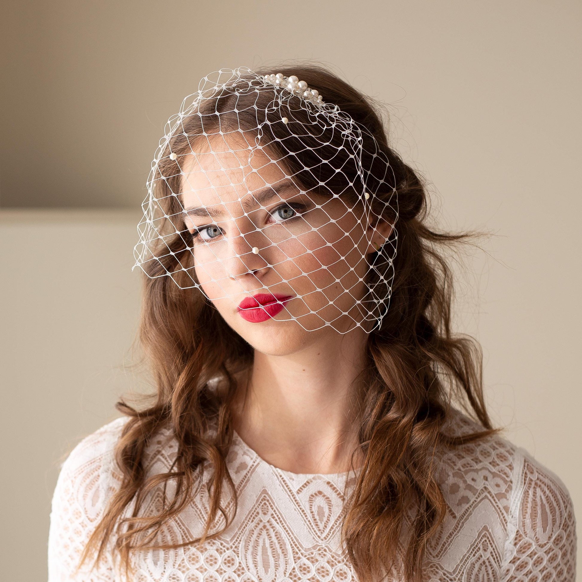 Pearl Birdcage Wedding Veil: Swarovski Crystal Beaded Bridal Veil