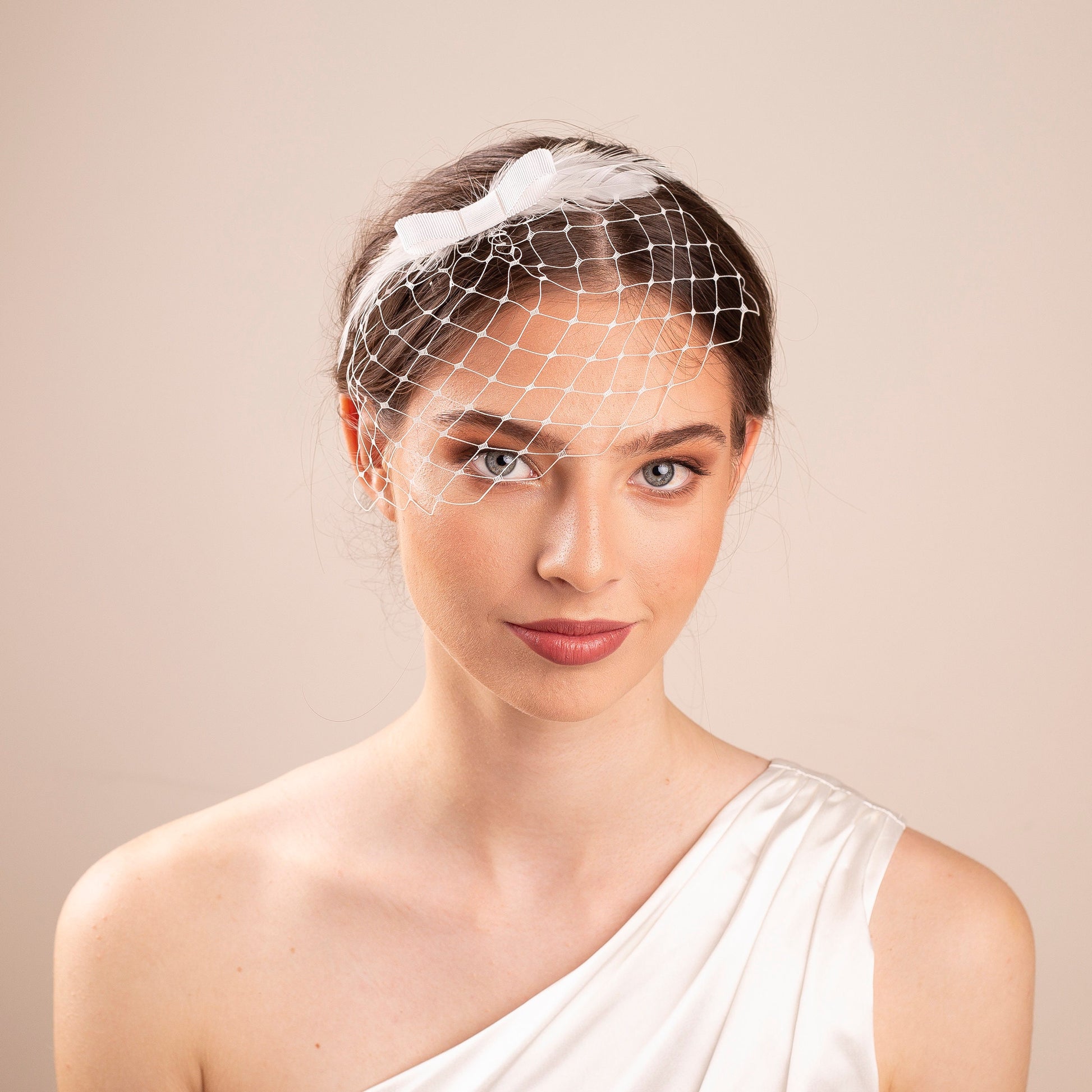 Feather Bridal Birdcage Veil: Short Wedding Hairpiece with Bow