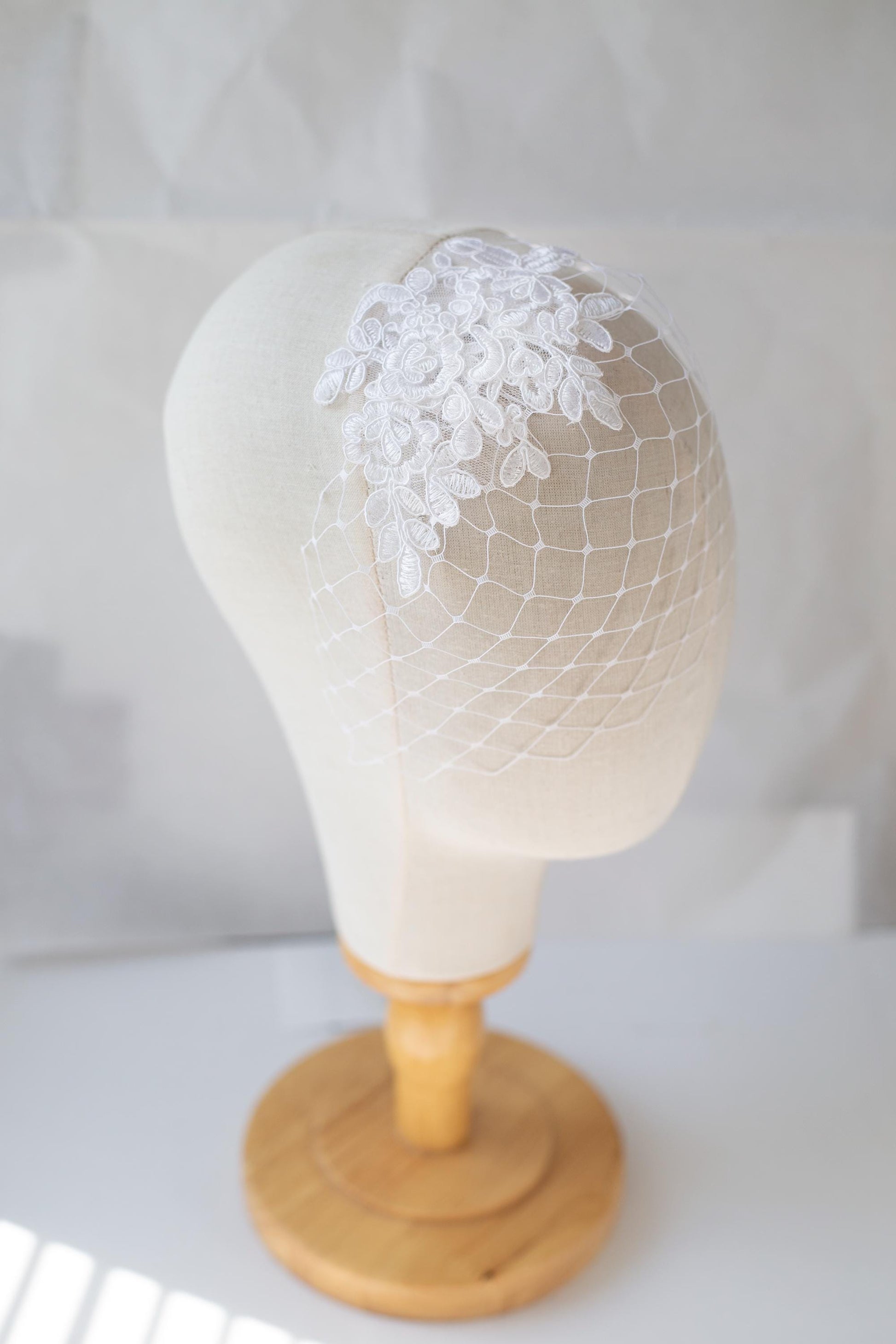 Floral Lace Birdcage Veil: White Vintage-Inspired Wedding Veil
